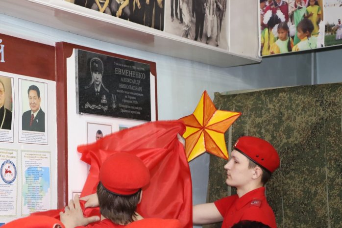 Мемориальную доску Александру Евмененко открыли в школьном музее. Рядом опубликованы его фотографии, школьные и военные документы. «Все мы знаем, как наши деды, прадеды защищали во время Великой Отечественной войны нашу великую державу. А сегодня наши ребята в составе Вооруженных сил России защищают нашу страну. Они отдают свои жизни, чтобы у всех нас было мирное небо над головой. Орден мужества просто так не дается, его нужно заслужить. И Александр Евмененко его заслужил. Он с честью выполнил свой патриотический долг», - отметил на мероприятии заместитель главы Ленского района Прокопий Петров.